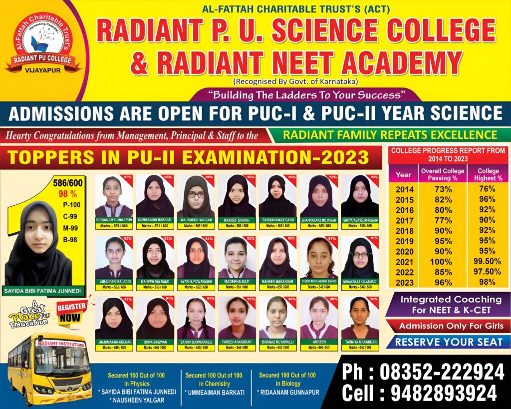 "Radiant PU College gave me the foundation I needed to crack NEET. The dedicated faculty and supportive environment made all the difference in my journey to crack the NEET exam."